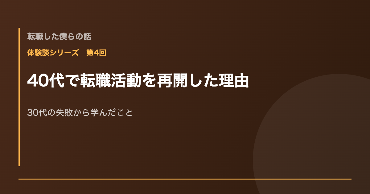 でも40代になって、もう一度転職活動を再開することを決意しました。この記事では、その理由と、40代転職に踏み出すまでの気持ちの変化を正直に書きます。
