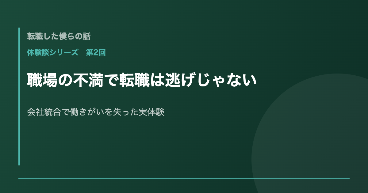 • 第2回(本記事):職場の不満で転職するのは逃げじゃない