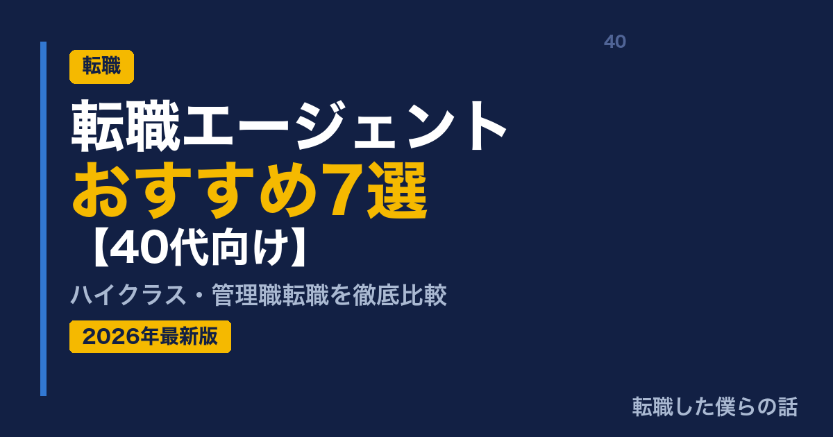 転職エージェントおすすめ7選【40代向け】2026年最新・ハイクラス・年収アップ徹底比較